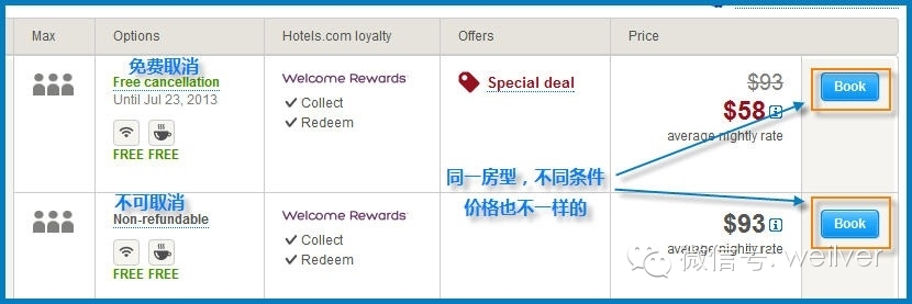注意查看退訂的條件,如果妳是糾結帝,盡量選擇可以免費退房的房型,點「Book」進入下一步預訂界面