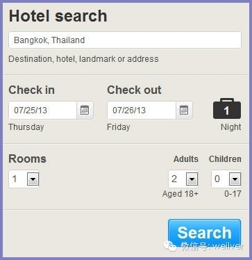 搜索條件可以是城市名,酒店名甚至酒店地址