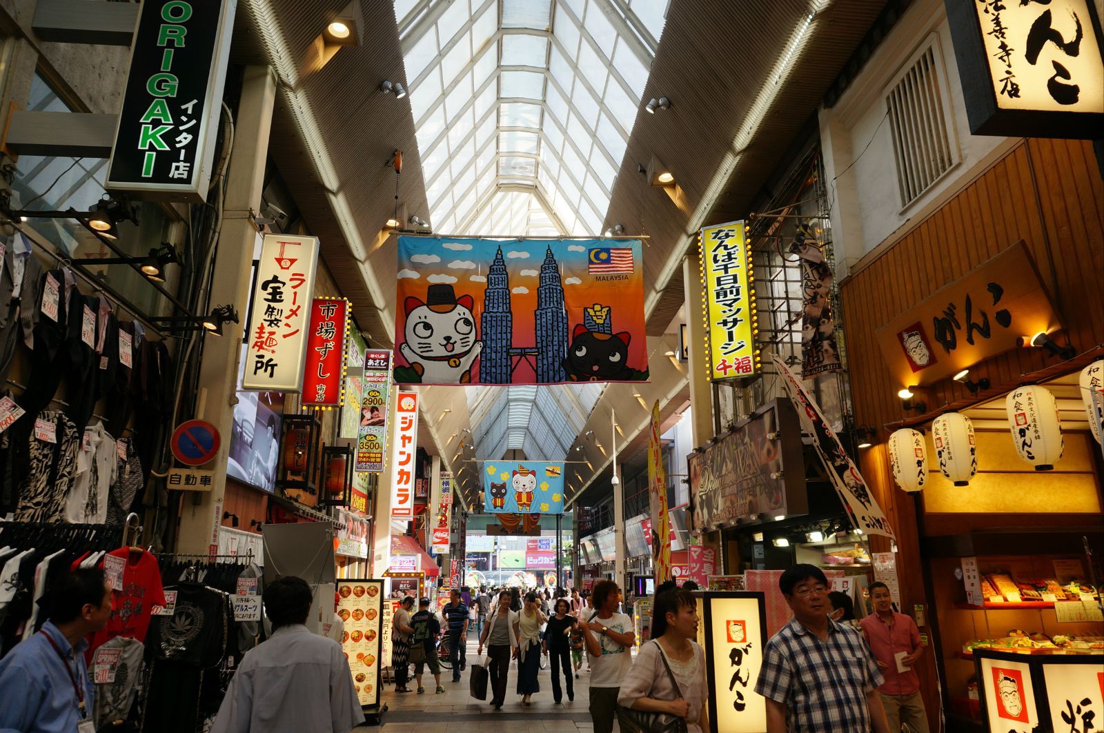 是以今宫戎神社参拜道兴起的商店街。除了老铺以外,还有时尚名店,包罗万象的店铺是戎桥的特色。 这里有丰富的大阪传统特色手工制作以及纪念礼品的商铺,非常适合回国送给亲友。这里还有众多让女生尖叫的日本名牌护肤品。